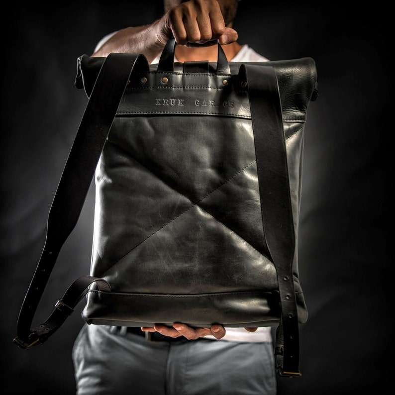 Sac à dos en cuir Roll Top Sac à dos pour hommes Roll Up School Christmas Gift LRTB-0030