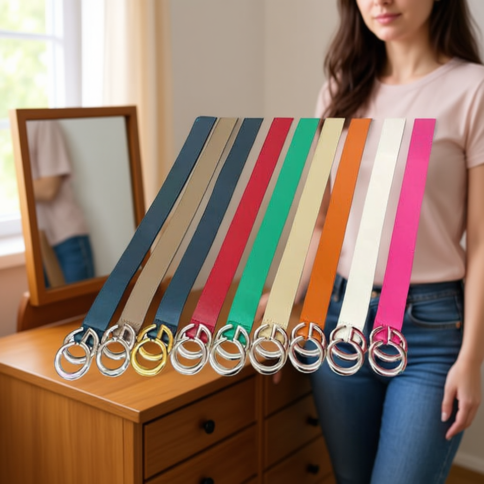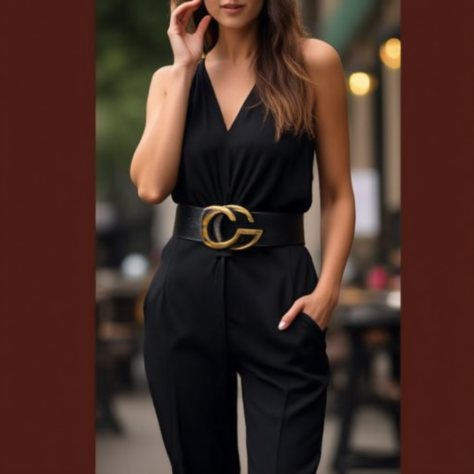 Ceinture en cuir Angelina 3,5 cm avec boucle à lettres dorée antique pour femme, boucle en D décontractée, en cuir de vache véritable