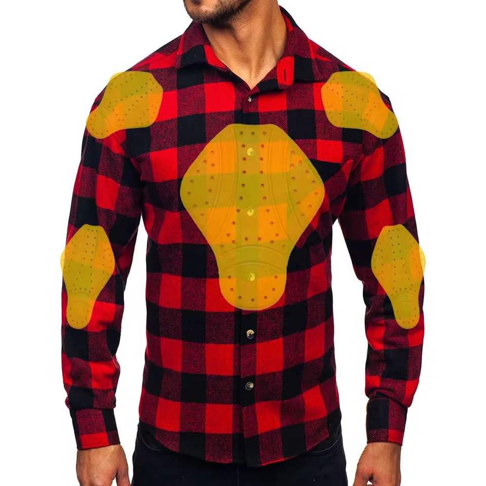 Chemise en cuir pour motard, à manches longues, blindée, pour homme, hiver, brodée, tricotée