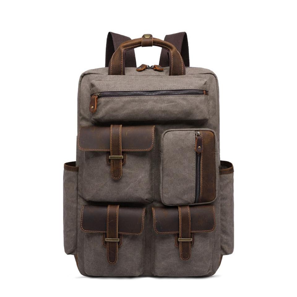 Material:Genuine Leather Canvas Backpack