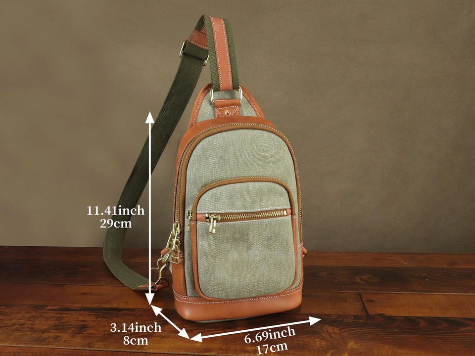 Material:Genuine Leather Canvas Chest Bag