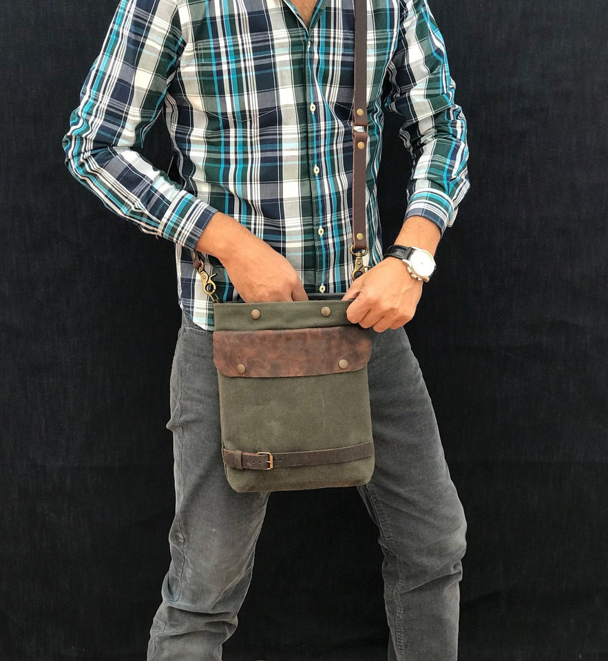 Material:Genuine Leather Canvas Chest Bag