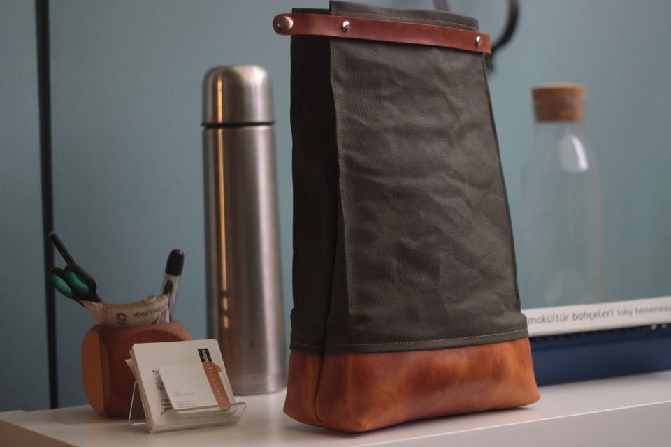 Leather Canvas Lunch Bag High Quality Insulated Tote Durable Portable Multi-function Cooler Bag for Office Travel 2 Persons