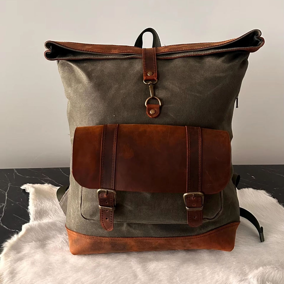 Mots clés:Sac à dos en toile de cuir véritable
