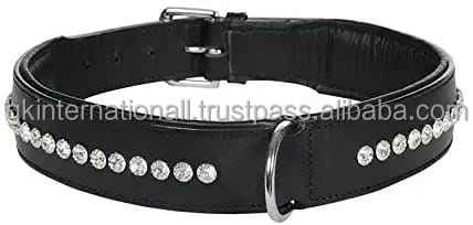 Collier de chien en cuir pu, rembourré à cristaux