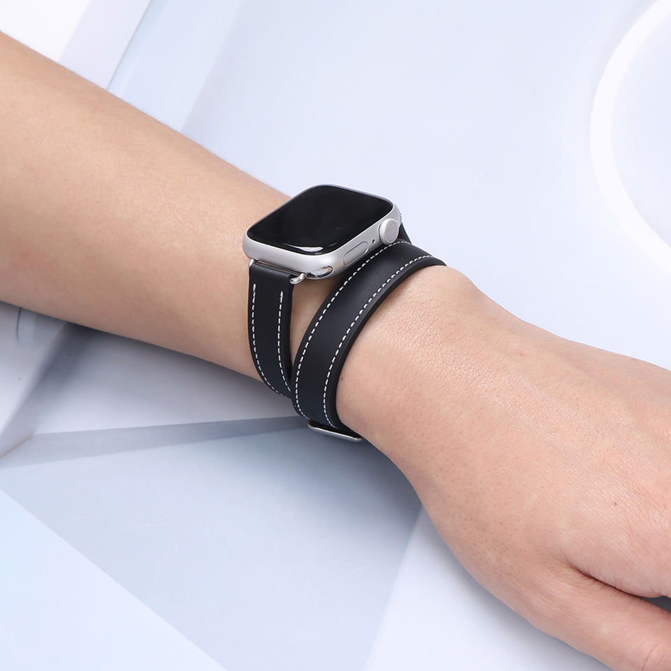 Double bracelet en cuir pour Apple Watch ultra 2 49 mm interchangeable 38/40/41mm 42mm 45mm Bracelets de montre pour Iwatch Series 10 9 8 7 6 5