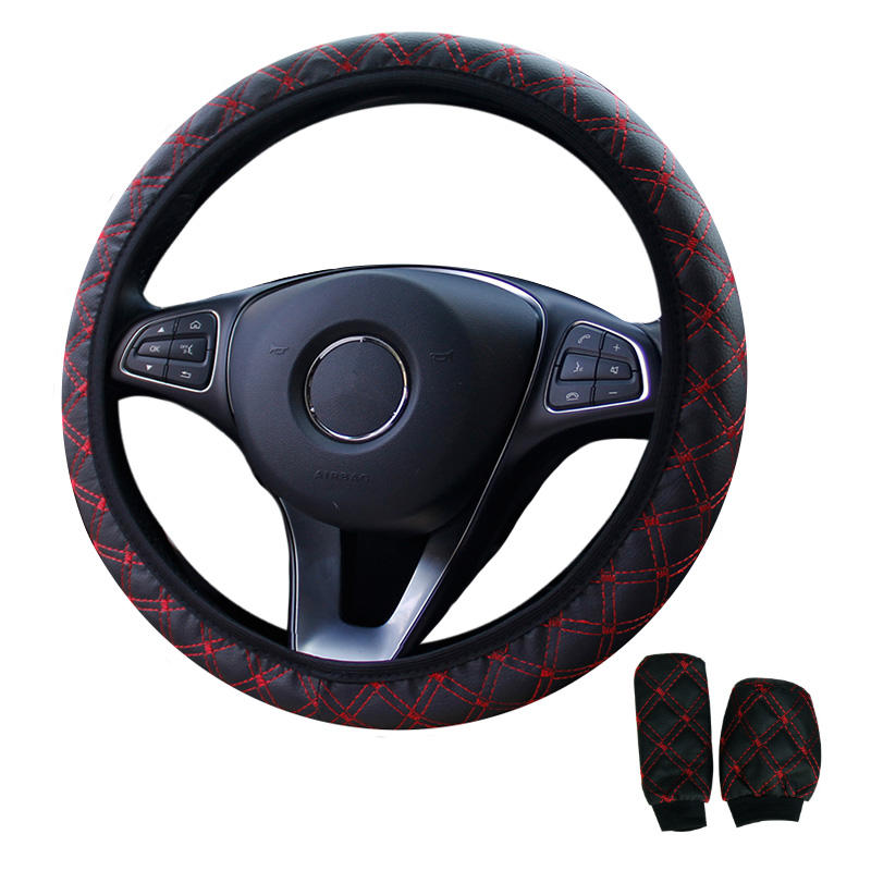Broderie en cuir sans anneau intérieur élastique couverture de volant de voiture couverture de poignée de vitesse ensemble de frein à main
