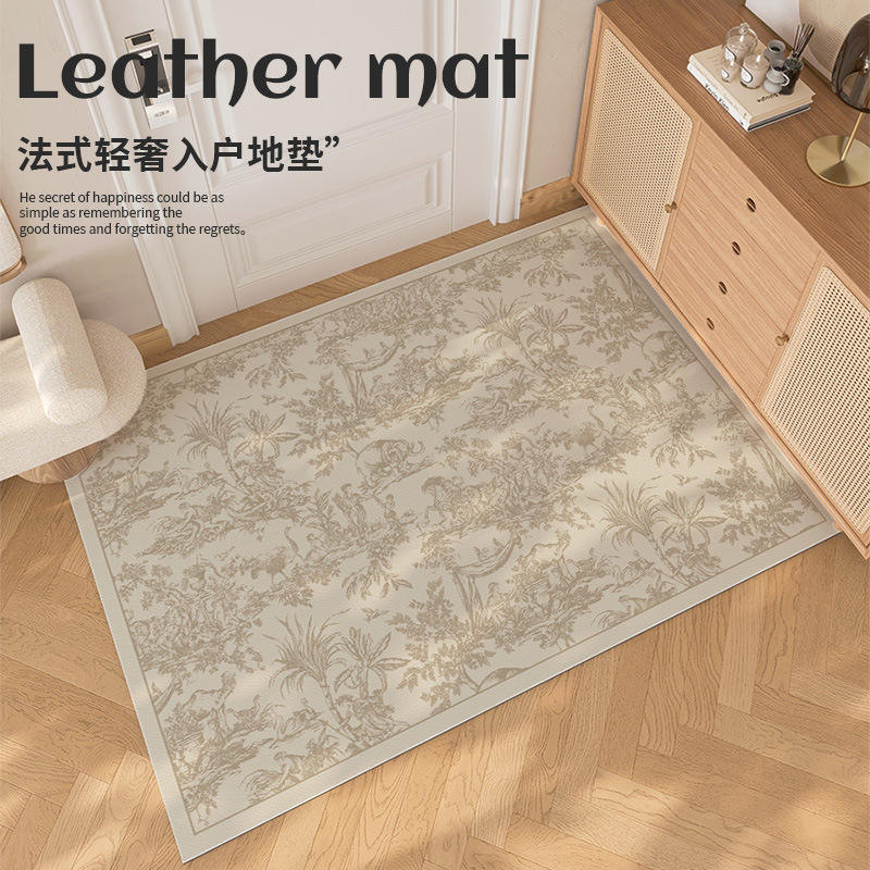 Tapis d'entrée en cuir rectangulaire couleur crème insonorisant, résistant aux taches, lavable, motif original, en PVC