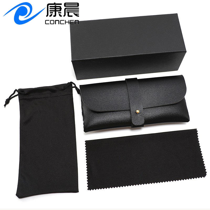 Ensemble d'étuis à lunettes en cuir, rectangulaires, noirs, avec boîte et chiffon pour le rangement et la protection des lunettes