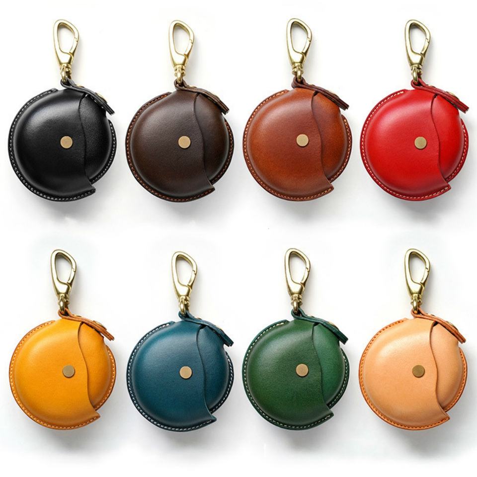 Porte-monnaie rond rétro en cuir véritable fait main, petit sac de rangement, cadeau créatif personnalisé