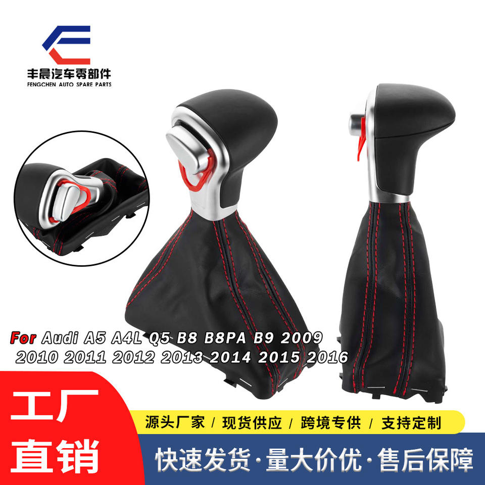 Housse de pommeau de levier de vitesse en cuir pour Audi A4 A6, transmission automatique, noir avec surpiqûres rouges, style classique