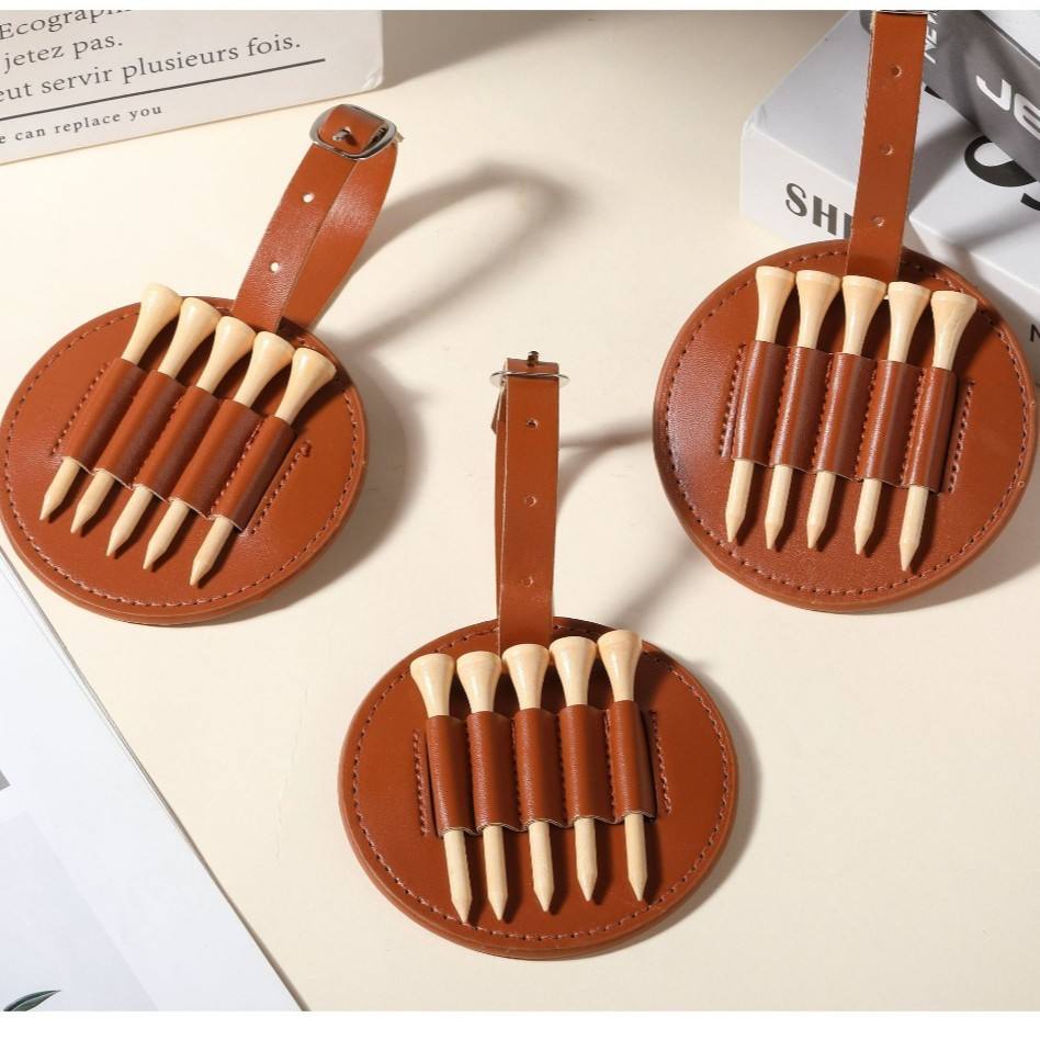 Étui de rangement pour tees de golf en cuir marron, support rond portable avec sangle pour la protection et le transport des tees