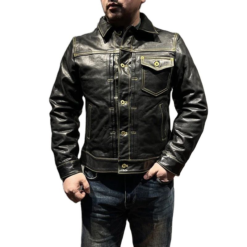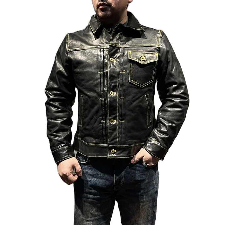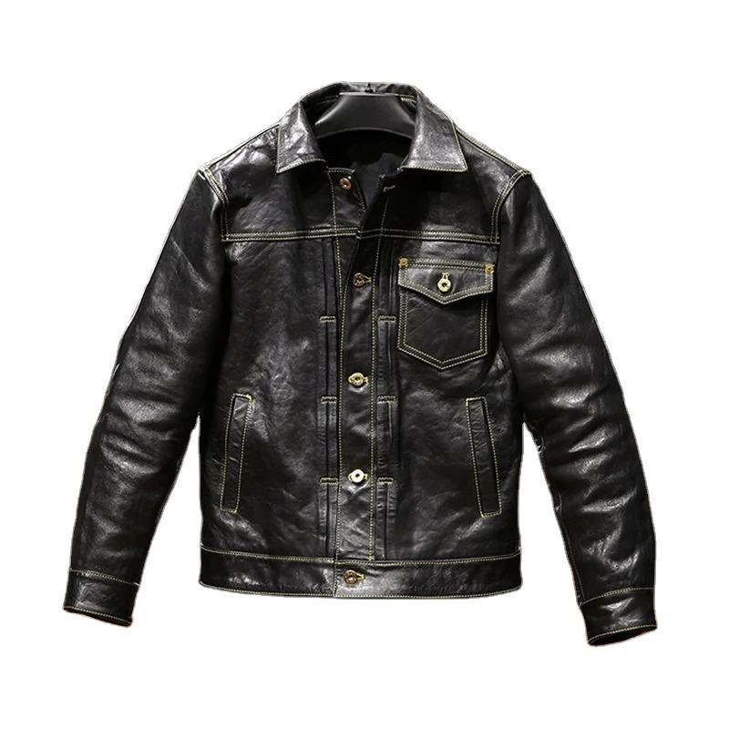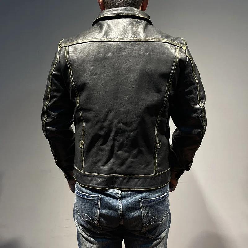Veste en cuir pour homme, style grande taille 5XL, cuir de vache naturel, simple boutonnage, coupe ajustée, veste en cuir véritable pour homme