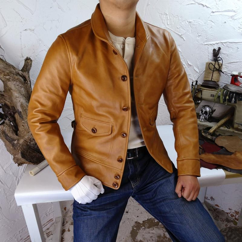 Veste en cuir bleu royal avec bretelles d'hiver Vestes pour hommes en peau de vache véritable Vestes en cuir pour hommes