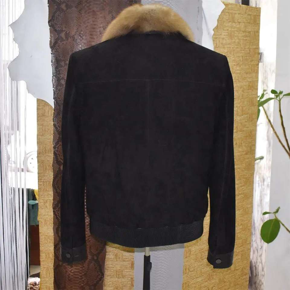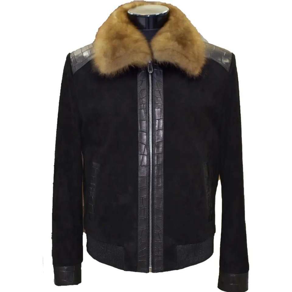 Veste d'hiver pour homme en cuir véritable effet peau de serpent, col montant, logo frontal, respirante, écologique, doublure en bambou vintage