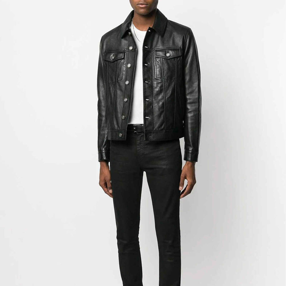 Vestes en cuir pour hommes, design tendance, veste pour hommes, prix de gros, avec col noir pour l'hiver