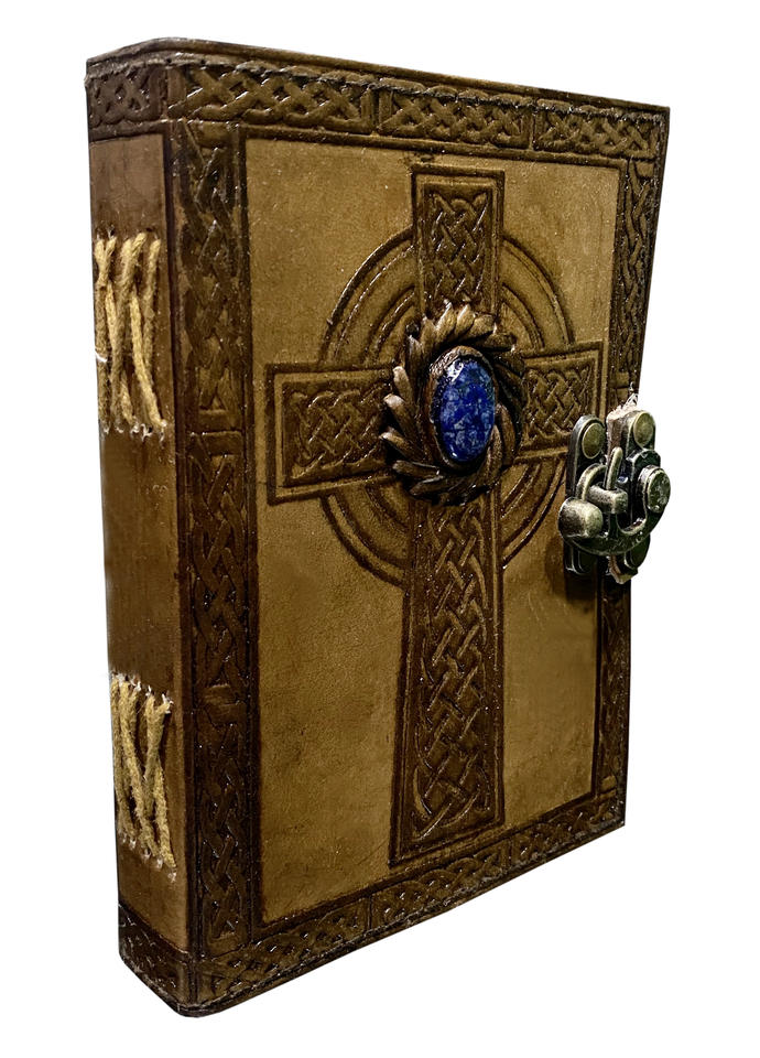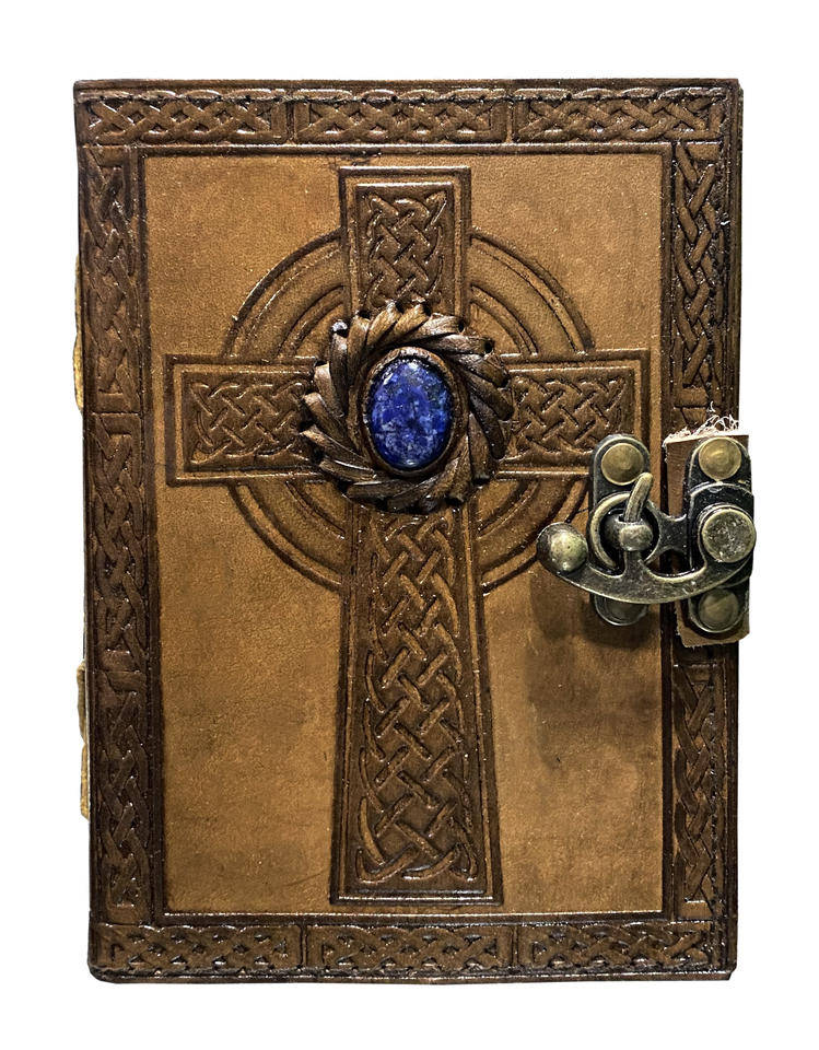 Agenda en cuir verni, croix celtique gaufrée, pierre précieuse Lapis-Lazuli bleu Royal, pour Journal intime, agenda, carnet de notes fait à la main, carnet C