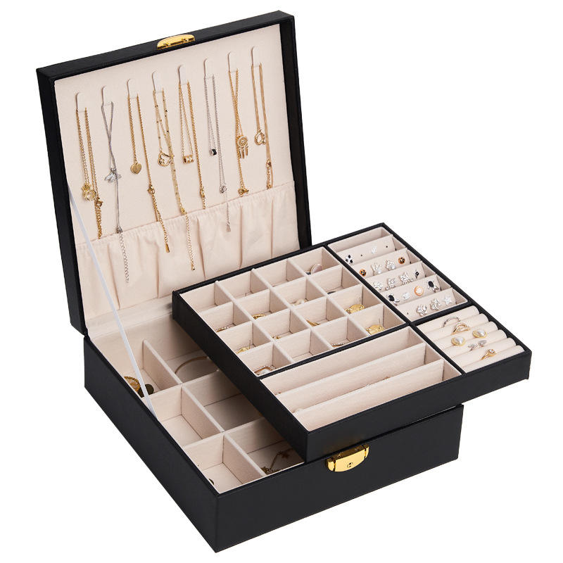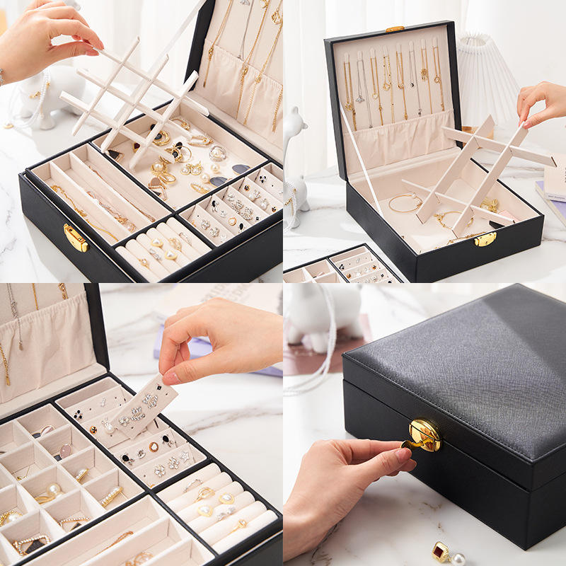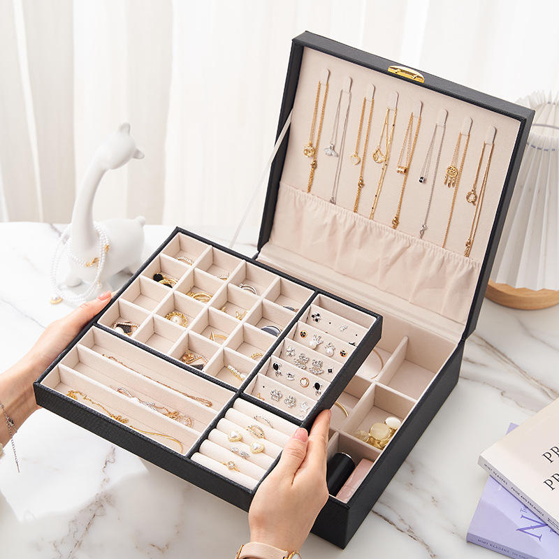 Boîte à bijoux en cuir multi-couches de luxe léger avec serrure, solution de rangement haut de gamme pour vos objets précieux
