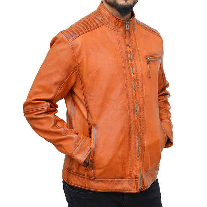 Blouson de moto en cuir avec fermetures éclair pour un confort respirant Blouson de moto en cuir haut de gamme pour hommes