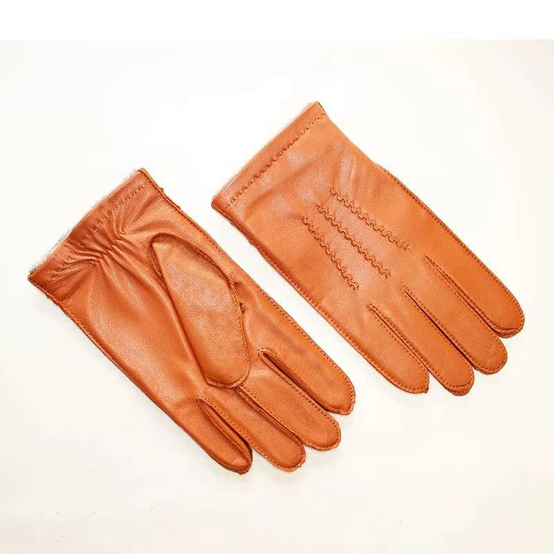 Leather Sheepskin Gloves Unisex Winter Driving Velvet Lining Warmth Cold Protection Outdoor Motorcycle Windproof Gloves