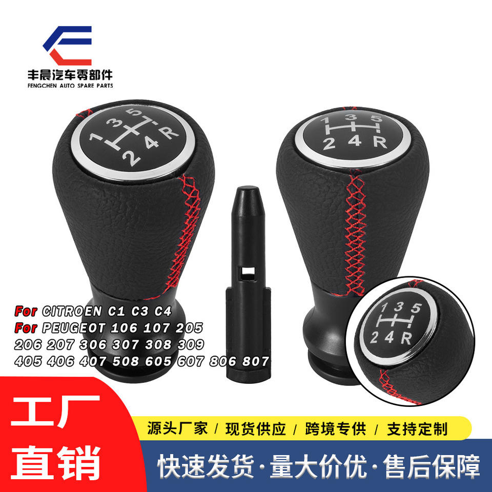 Pommeau de levier de vitesse en cuir avec surpiqûres rouges pour Citroën, style classique, boîte de vitesses manuelle