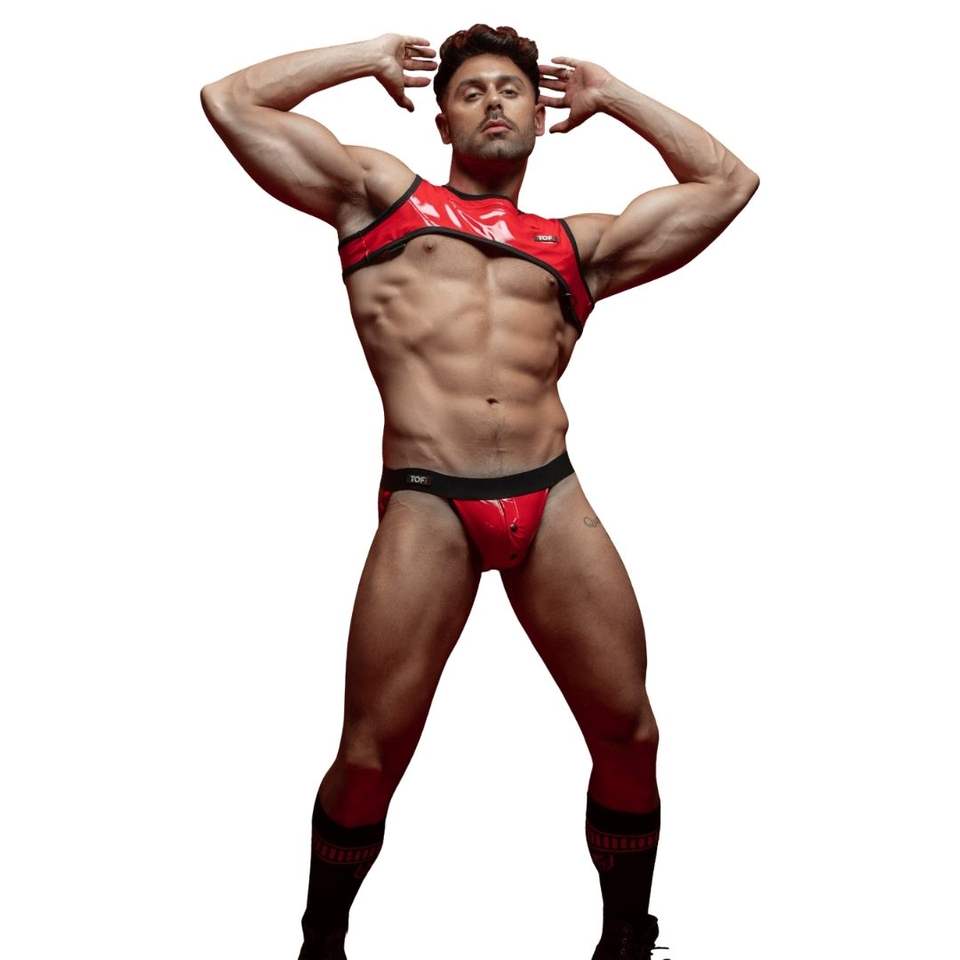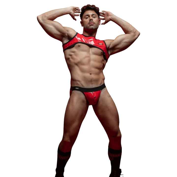 Jockstrap en cuir à boutons-pression rouge pour homme, style fetish, clubwear, brillant, sexy, avec pochette, imprimé animal, taille haute