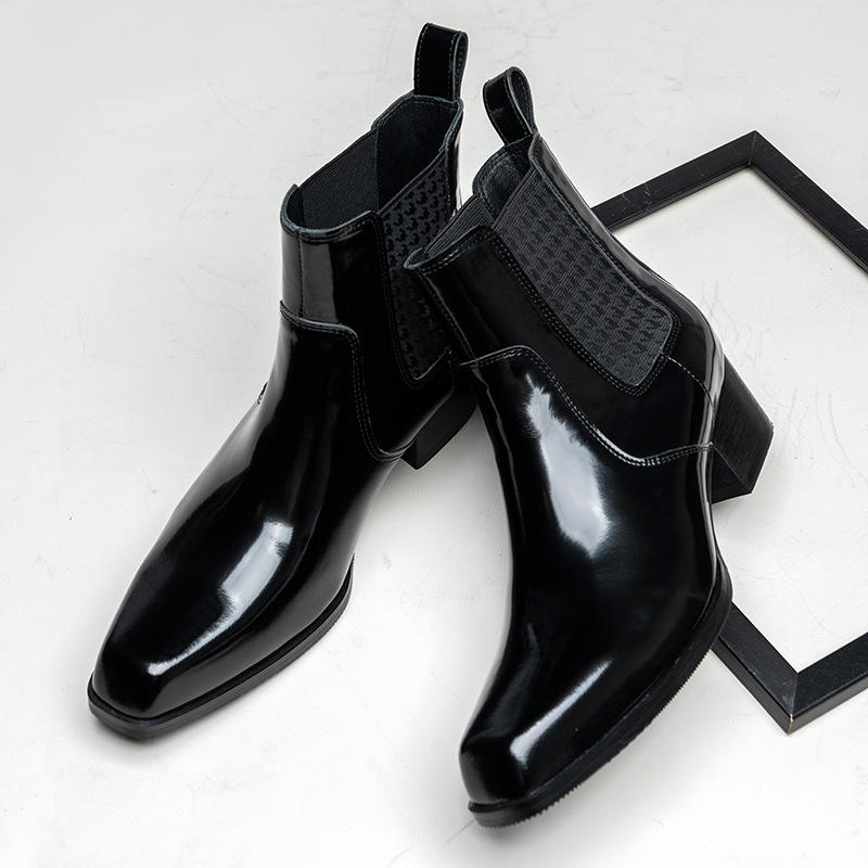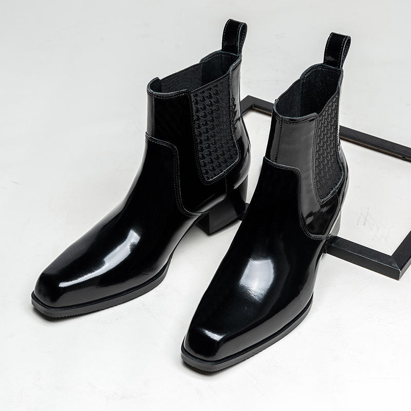 Bottes Chelsea en cuir à bout carré pour hommes, à enfiler, finition brillante, style simple, effet rehausseur, imperméables, respirantes, hiver