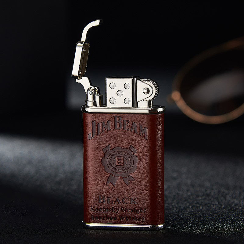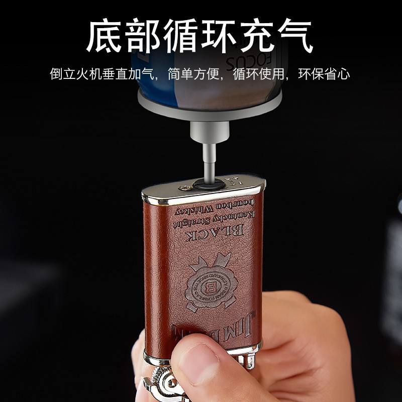 Leather Torch Lighter Inflatable Blue Flame Windproof Jim Beam Lighter
