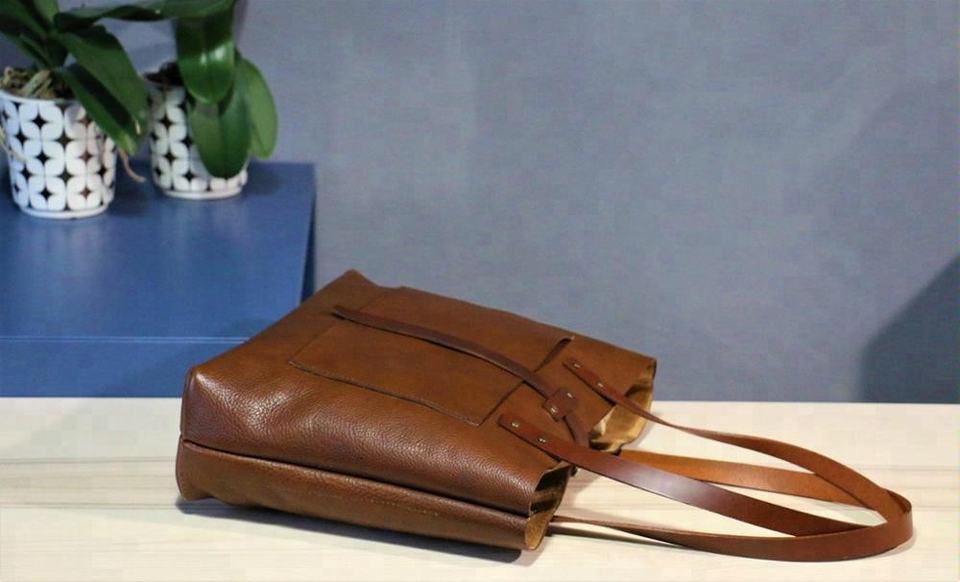 Tote bag en cuir de coton pour hommes, sac marron fait à la main AM-0002