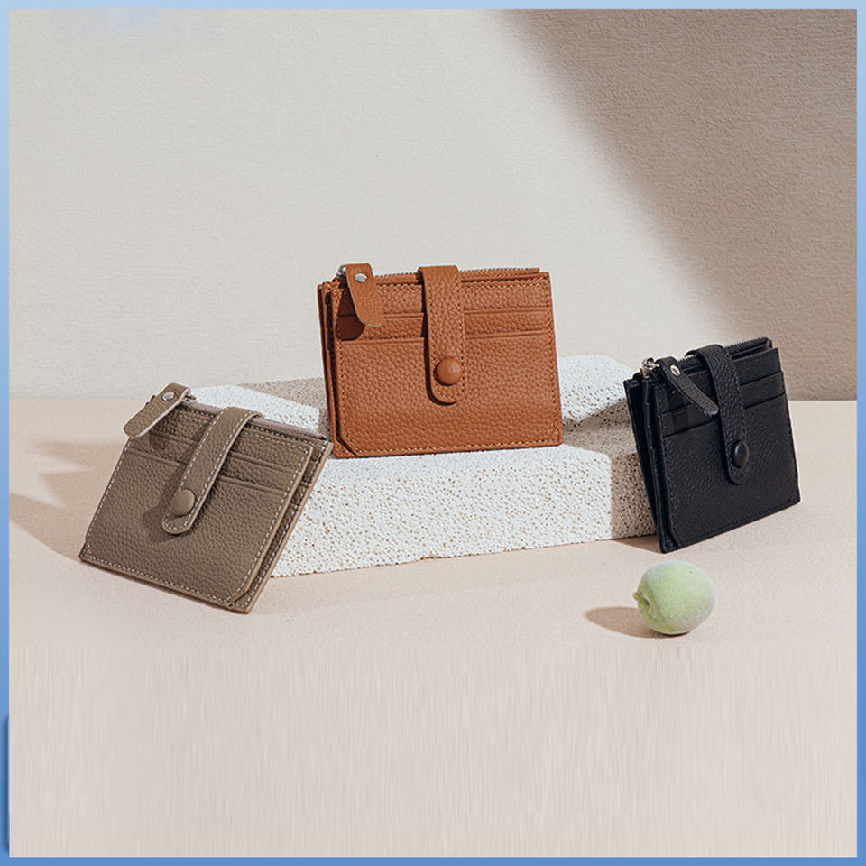 Sac à cartes en cuir ultra-mince, porte-monnaie à fermeture éclair à fentes multiples de style italien, mini portefeuille, cuir de vachette supérieur, design simple