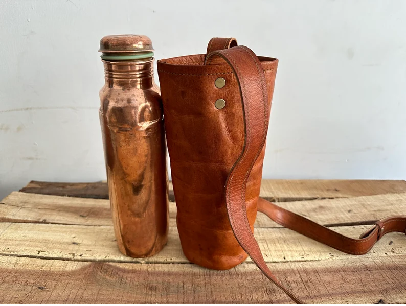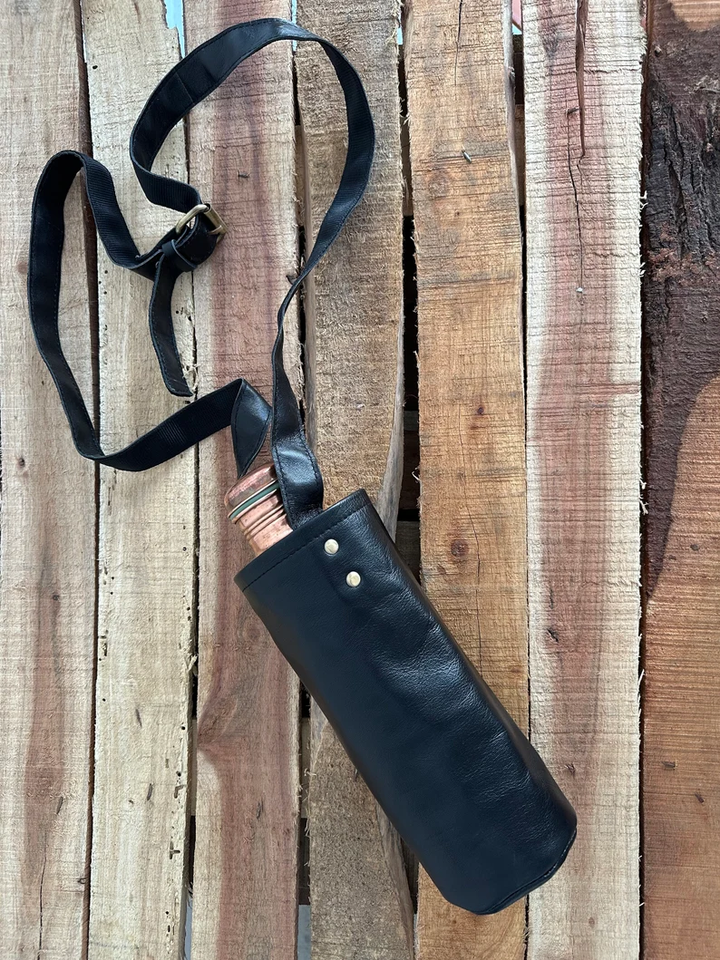 Étui pour bouteille d'eau en cuir avec boucle de ceinture, sangle réglable durable faite à la main, étui de transport élégant pour les activités de voyage et de randonnée