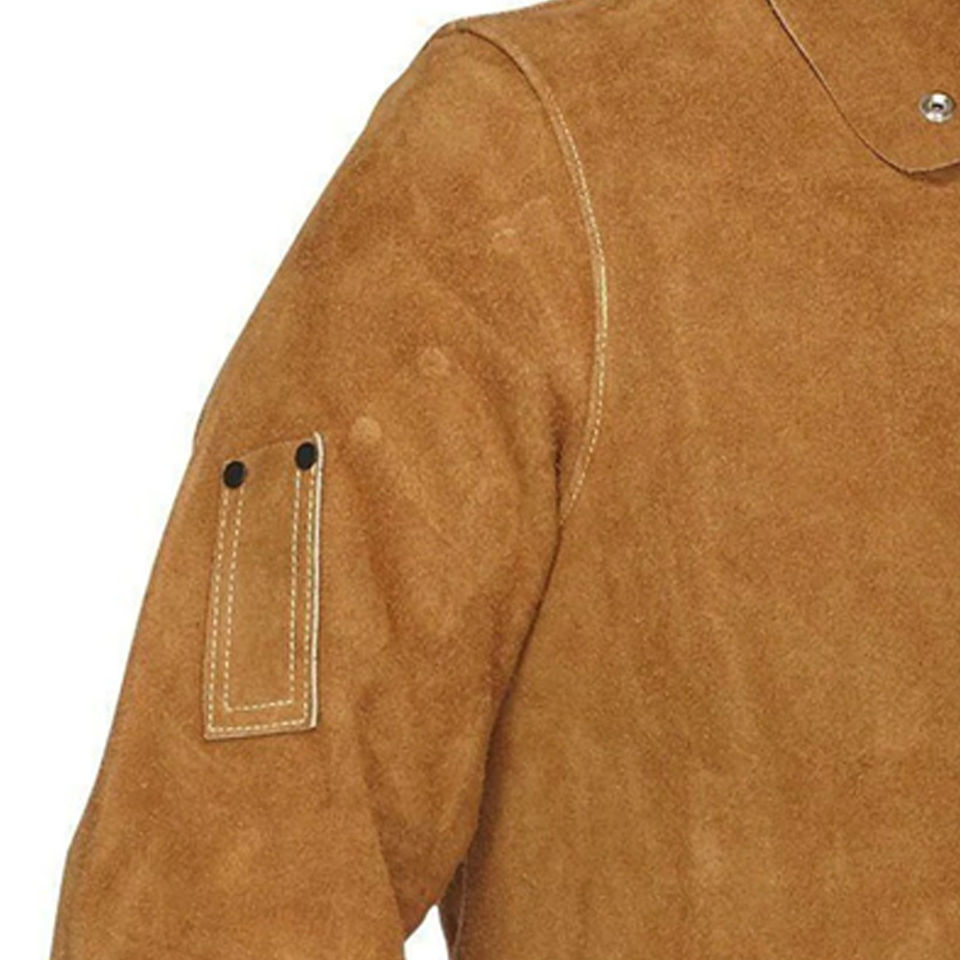 Veste de travail en cuir pour soudeurs, résistante aux flammes, imperméable, en cuir de vachette pleine fleur, résistance à la chaleur 500C-1000C