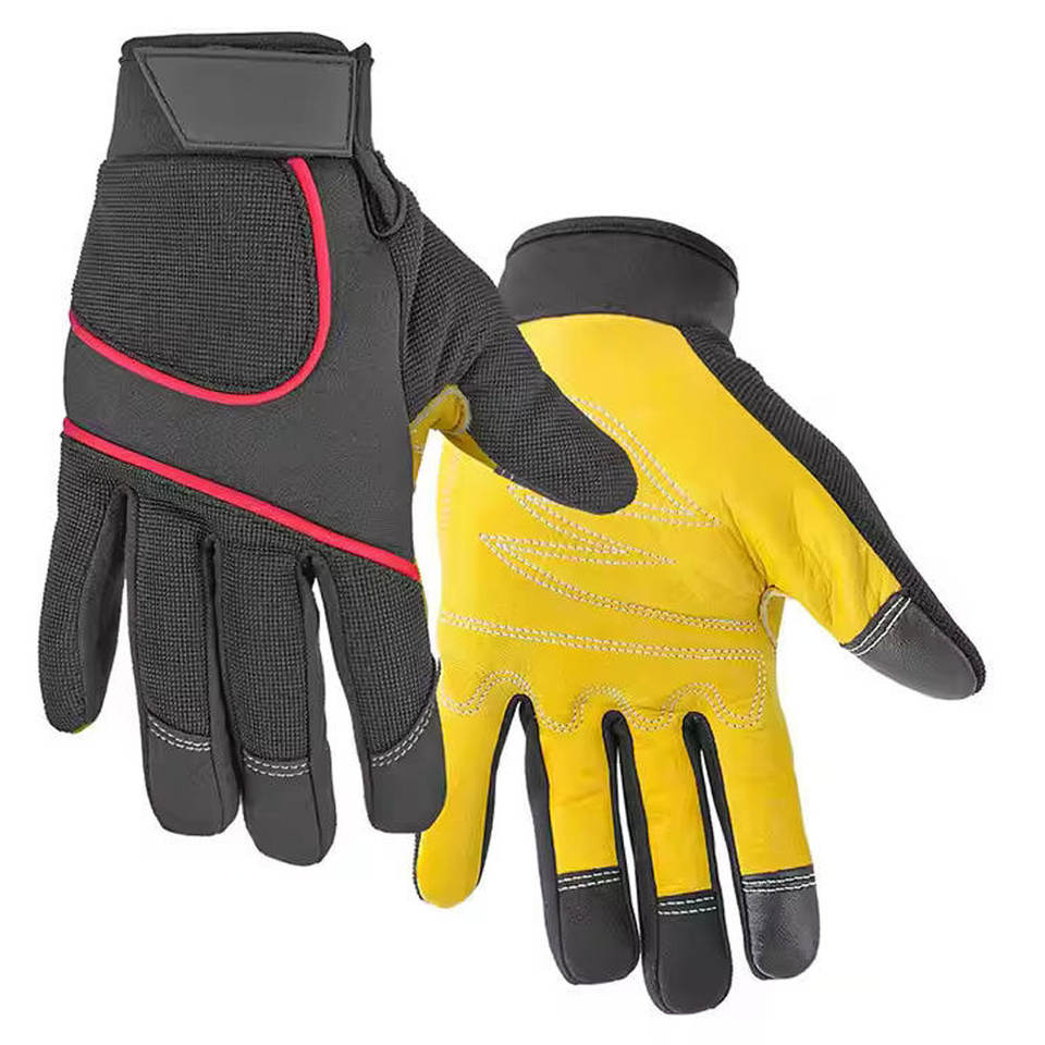 Gants de sécurité en cuir respirants et unis avec fonction tactile et détection d'aiguilles pour travaux industriels, de construction et mécaniques