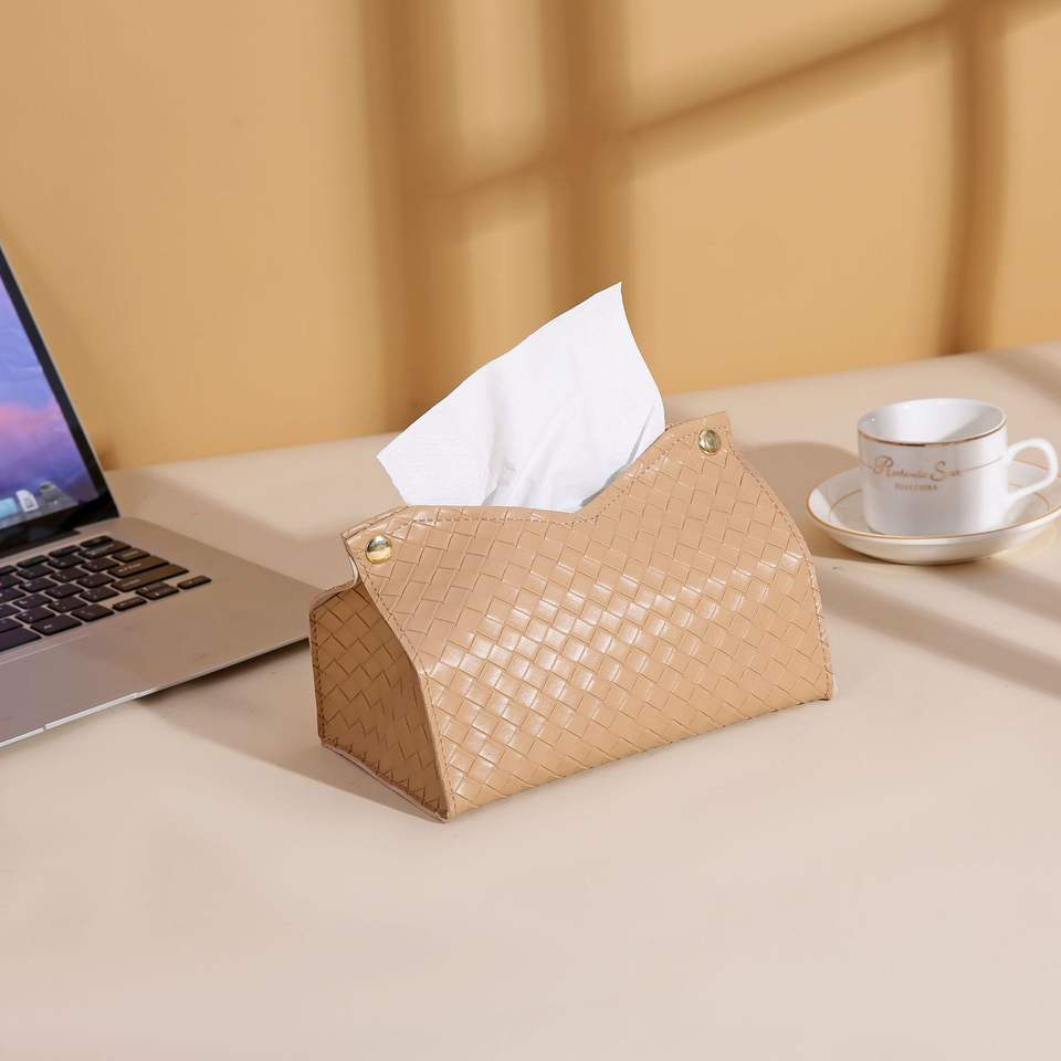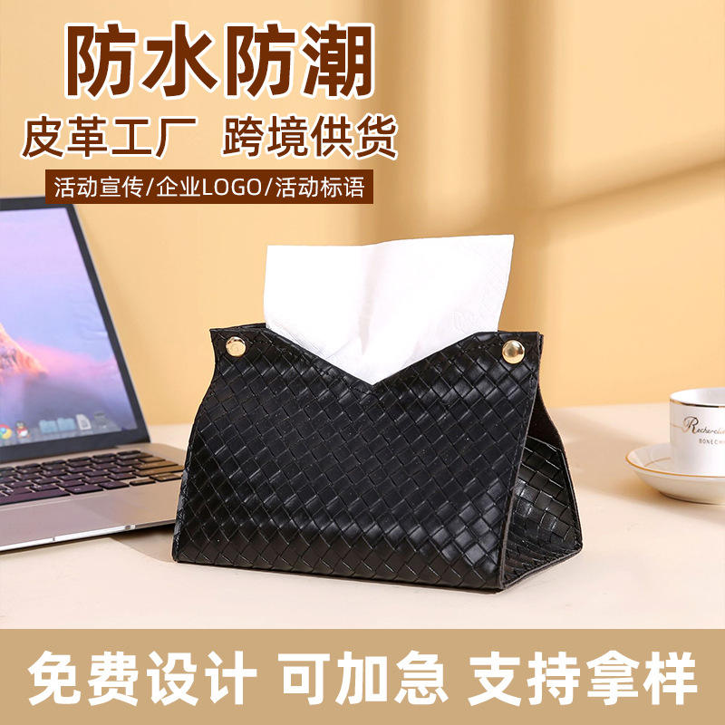 Leather Woven Tissue Box Free Standing Waterproof Multipurpose For Living Room And Bathroom