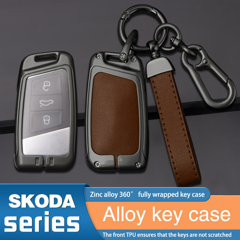 Coque de protection en cuir en alliage de zinc pour Skoda Superb 2 3 A7, porte-clés, accessoires auto