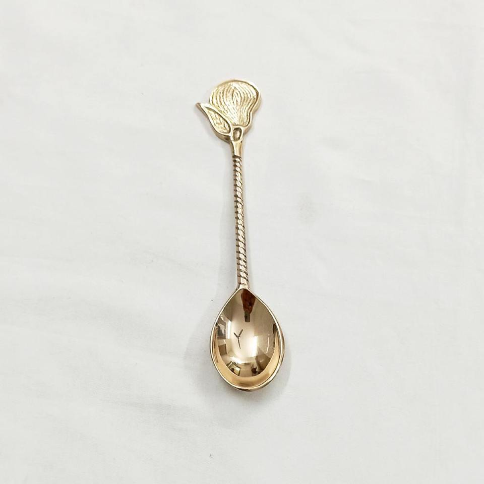 Feuilles & Rose fleur fini poignée faite à la main accessoires d'ustensiles de cuisine cuillère en laiton plaqué or avec cuillère en laiton gaufré nouveauté cuillère