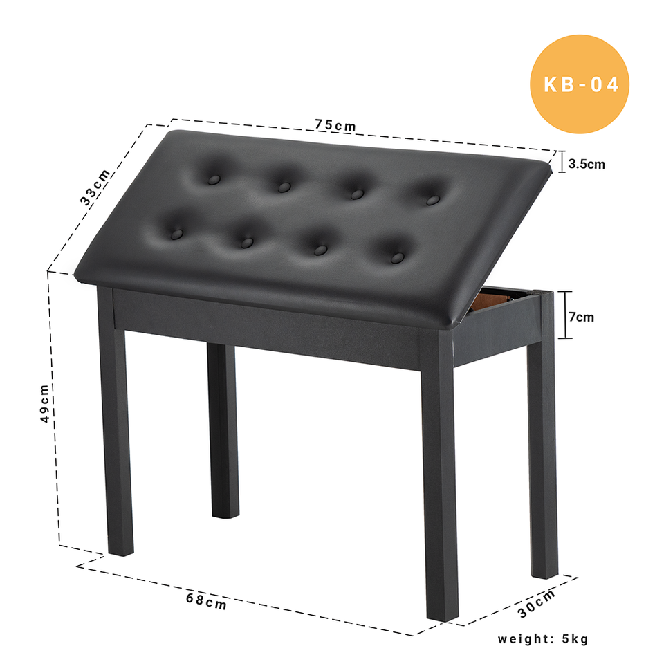 Lebeth KB-04 Coussin de siège en cuir moderne et confortable Chaise de piano Tabouret de piano en bois avec rangement