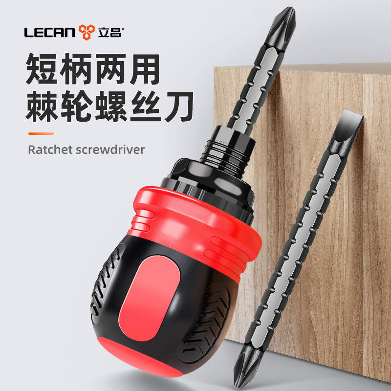 Lecan Ratchet Screwdriver 2 In 1 Phillips Bit Magnetic Short Handle For Home Diy Use
