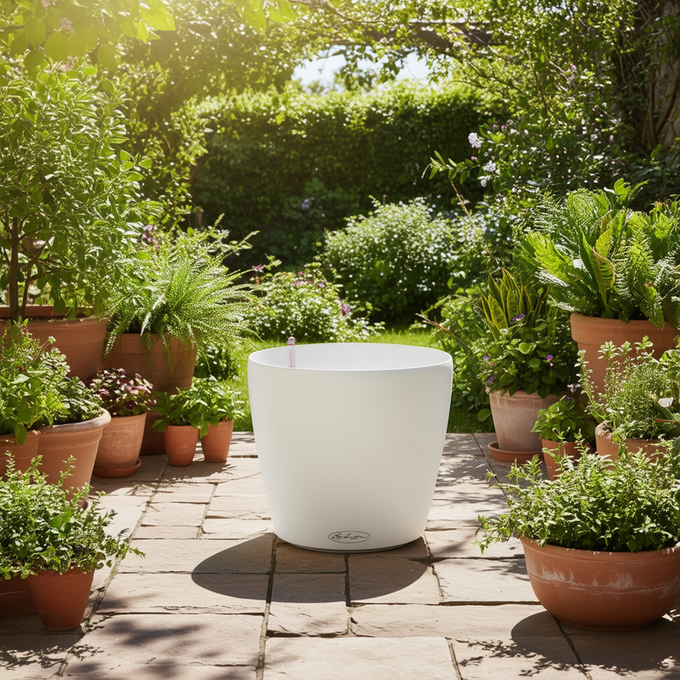 Lechuza Classico Color 28 Jardinière Blanche 13190 Pot de Fleurs Extérieur Résistant aux UV pour Jardinage