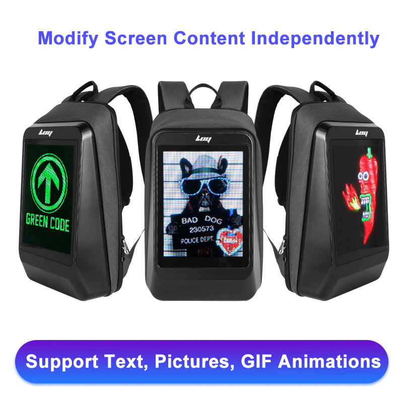 Sac à dos à écran LED, fabricant, promotion HD, sac publicitaire mobile pour la conduite, écran d'affichage électronique, sac d'école à LED