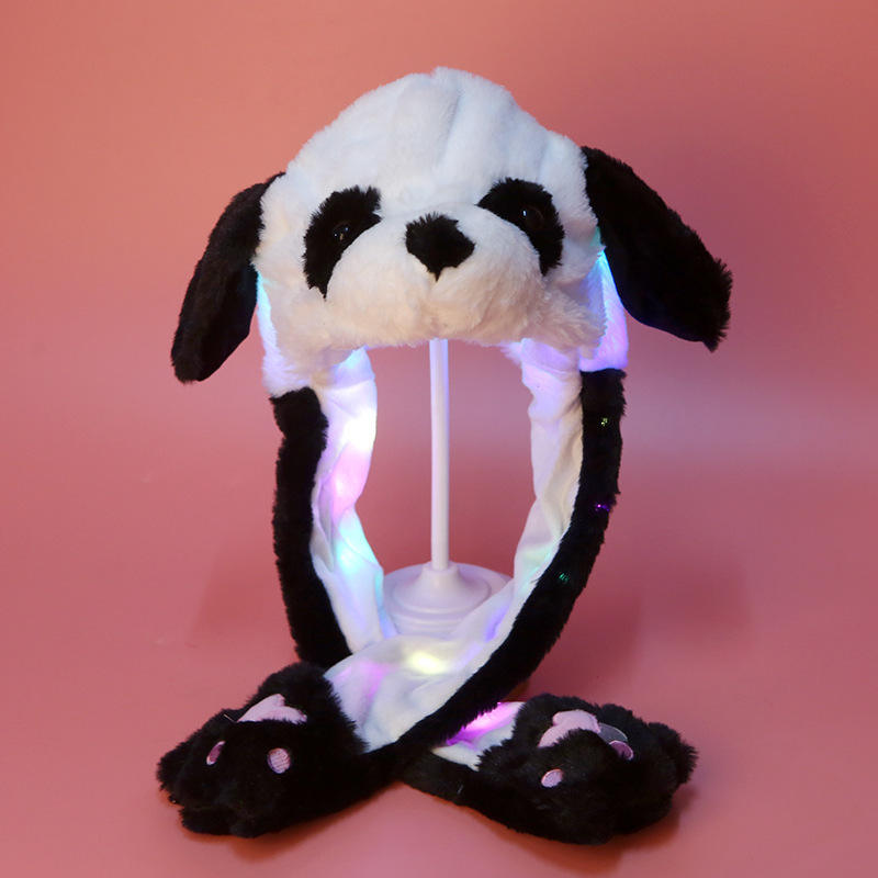 Chapeau de Lapin LED avec Oreilles Mobiles, Chapeau de Lapin Cartoon Chaud et Coloré avec Lumières LED, Jouet Lumineux pour Noël et Hiver S48