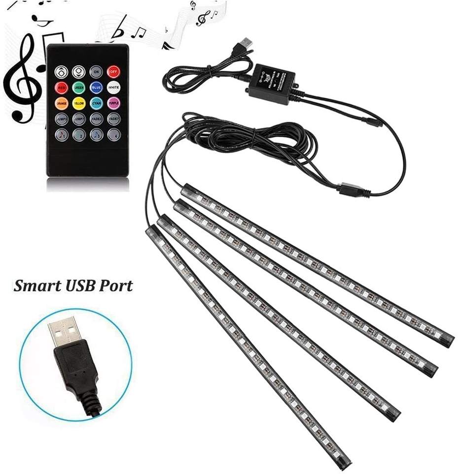 Allume-cigare Led USB, pour automobile, éclairage d'ambiance pour les pieds, rétro-éclairé, commande musicale via application, rvb, décoration d'intérieur