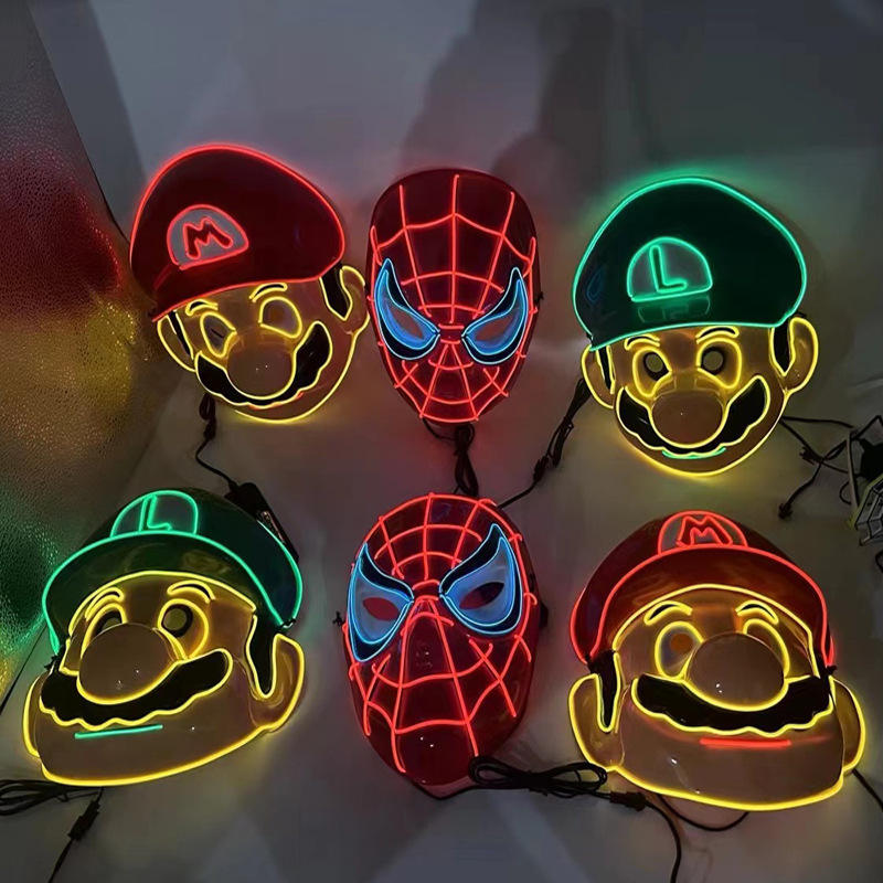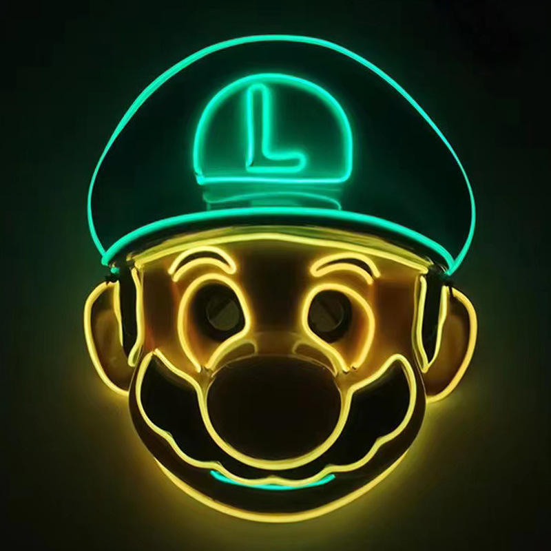 Masque Mario Super Mario lumineux à lumière froide, accessoire de déguisement pour adulte