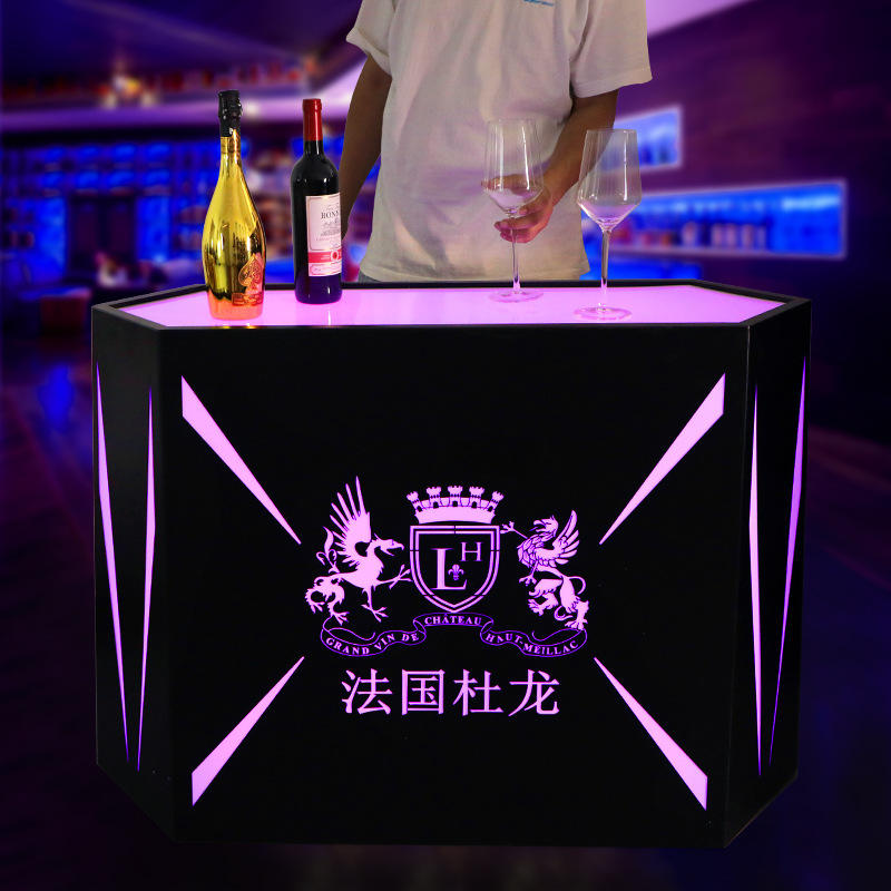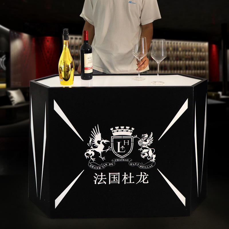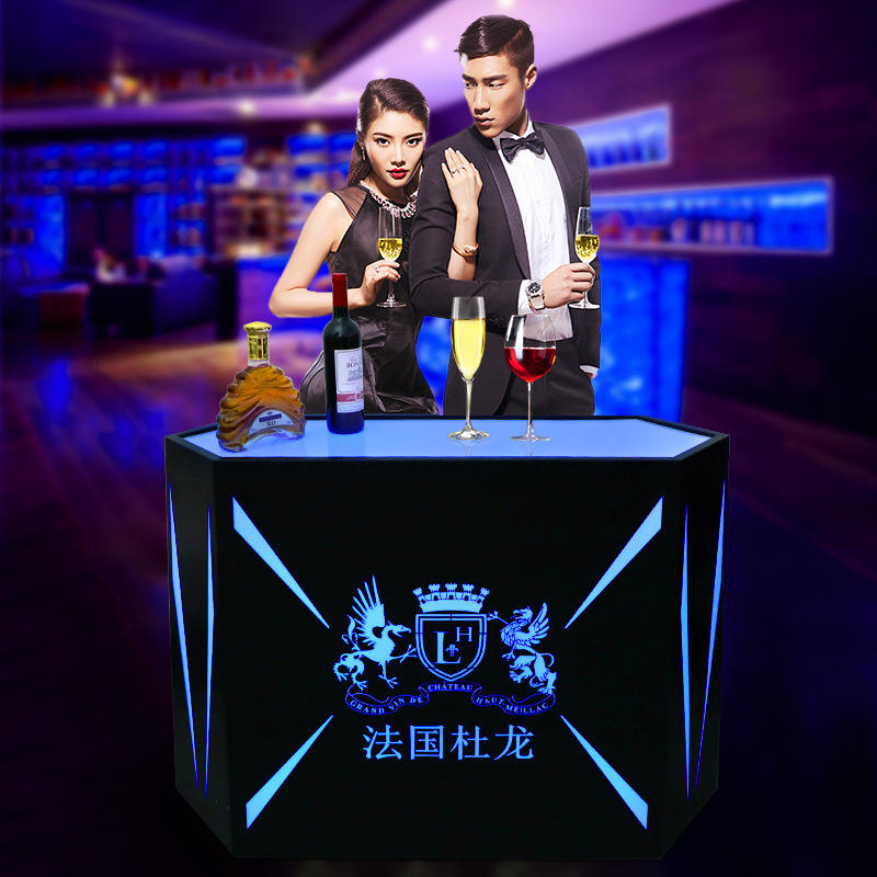 Support de présentation de vin rectangulaire éclairé par LED, en acier inoxydable, rechargeable, pour les fêtes et les lieux commerciaux
