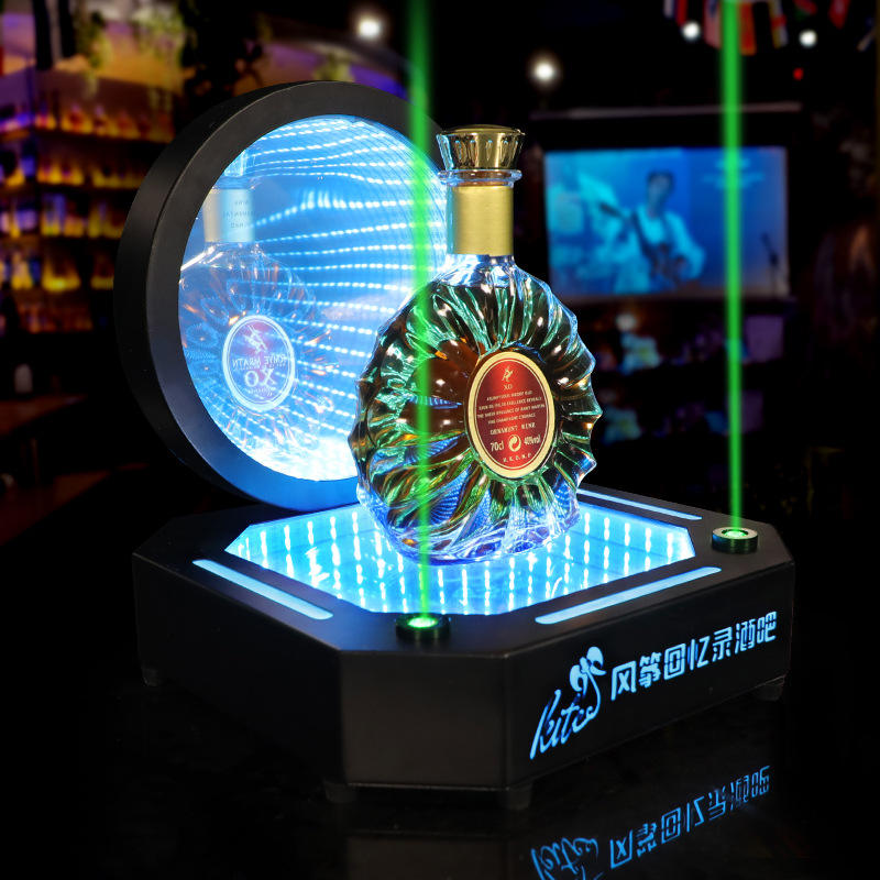 Support de présentation rond pour bouteilles de vin, éclairé par LED, pour bar, KTV, avec base illuminée, capacité 70cl