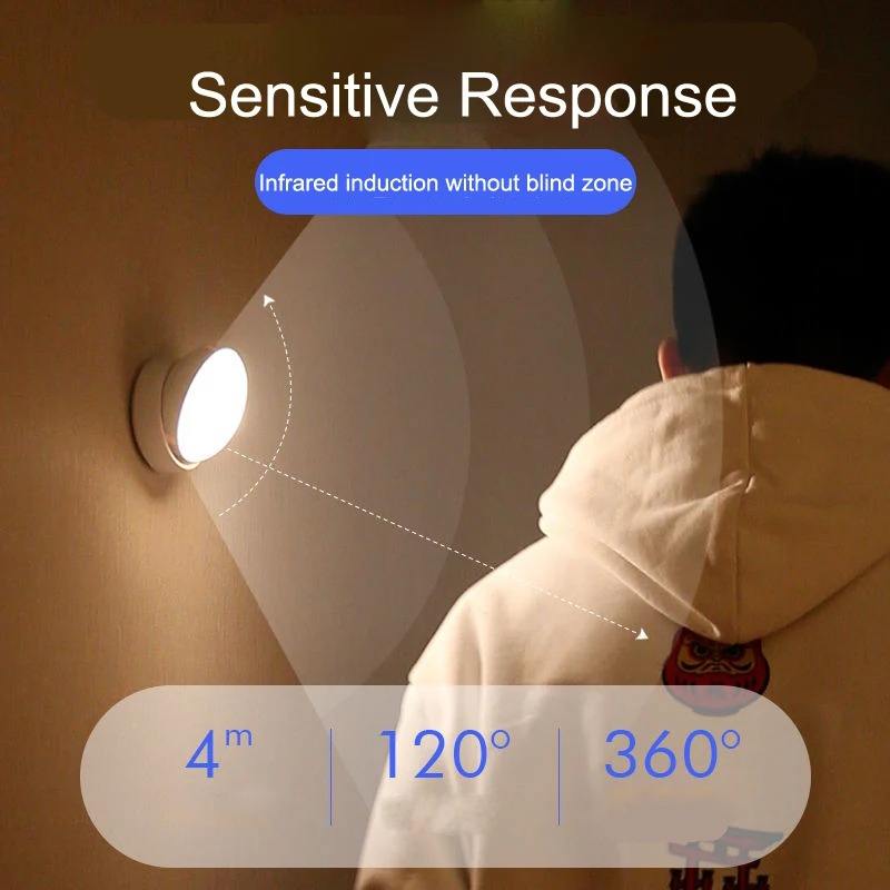 Lampe LED ronde à détecteur de mouvement, rechargeable par USB, à économie d'énergie, avec contrôle sonore/lumineux pour chambre, couloir, maison, salle de bain