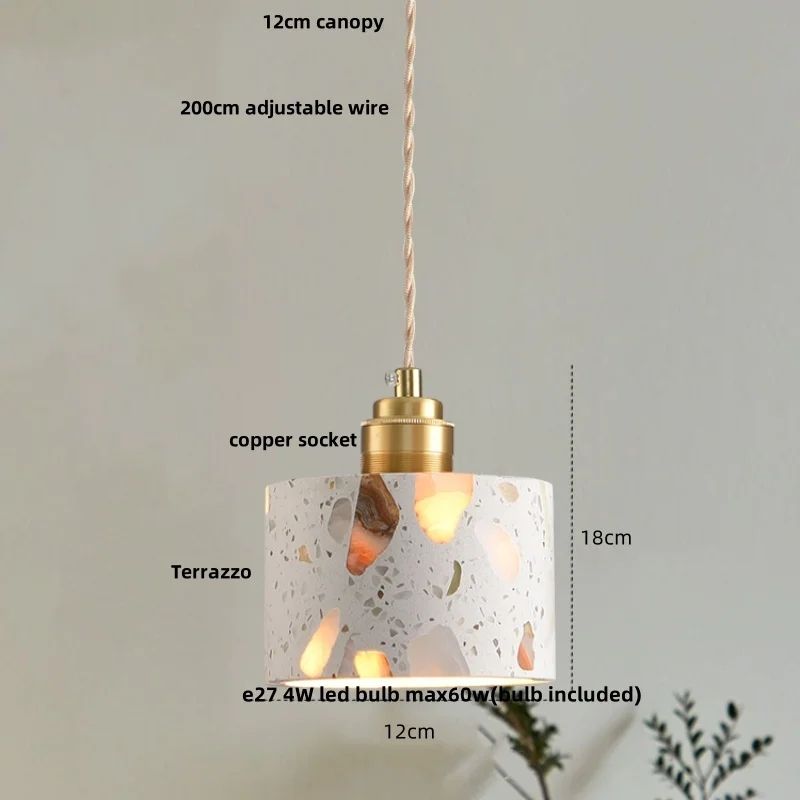 Luminaire suspendu à LED, restaurant, bureau, hall d'entrée, pierre terrazzo, douille en cuivre, décoration intérieure, lampe suspendue