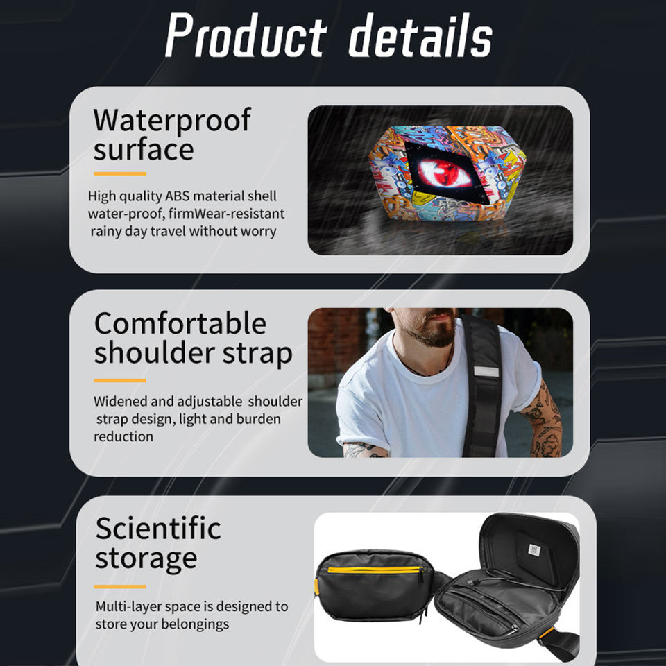 Sac à bandoulière LED Knight Bag Devil's Eye, imperméable, sac de voyage léger, Bluetooth 5V, modèle de transfert d'eau graffiti