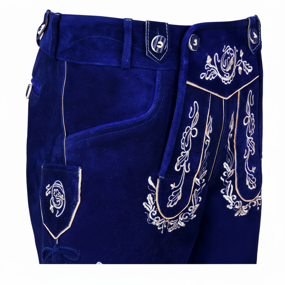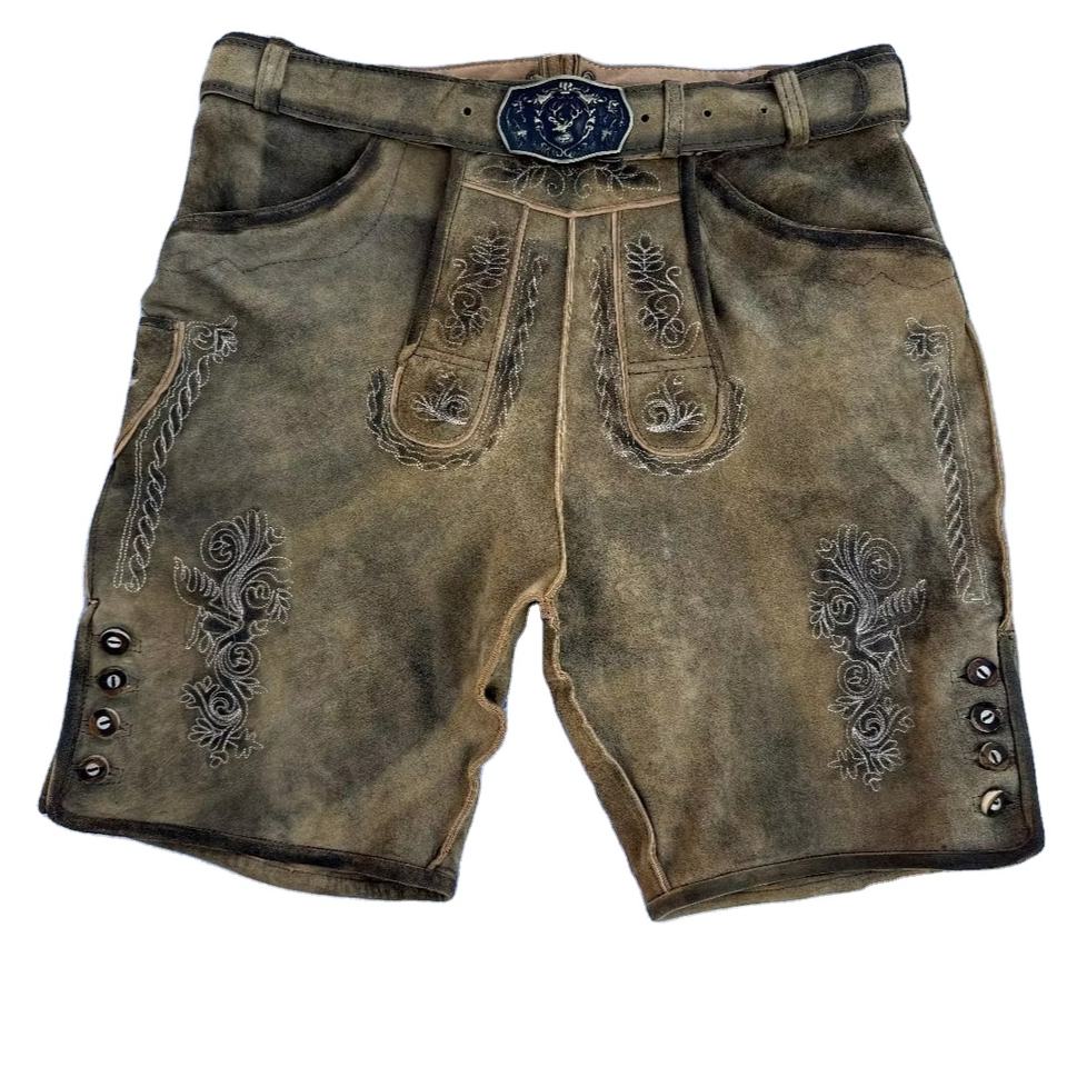 Lederhosen pour hommes, brodés, à boutons, taille mi-haute, en daim, style bavarois, pour l'Oktoberfest