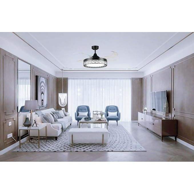 Ventilateur de plafond Leduni avec 5 pales en bois, lumière LED, télécommande, 6 vitesses, design moderne pour salon